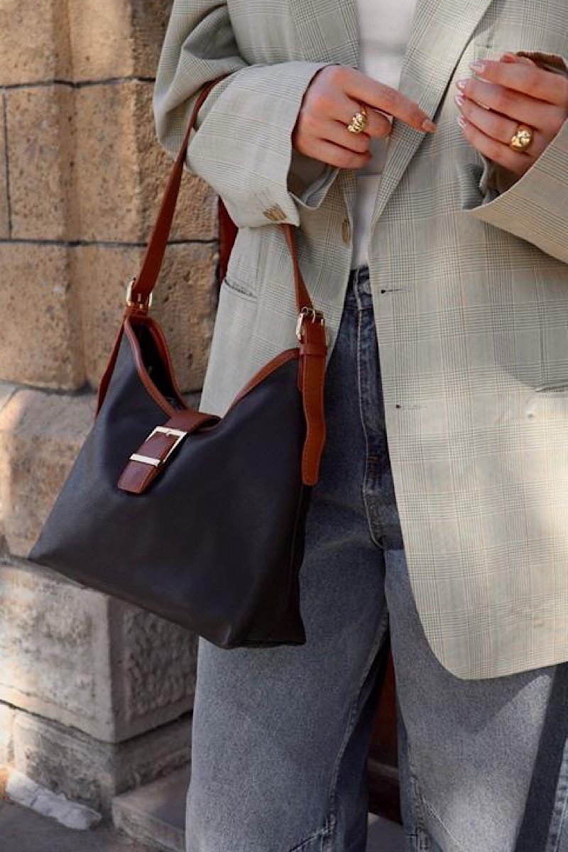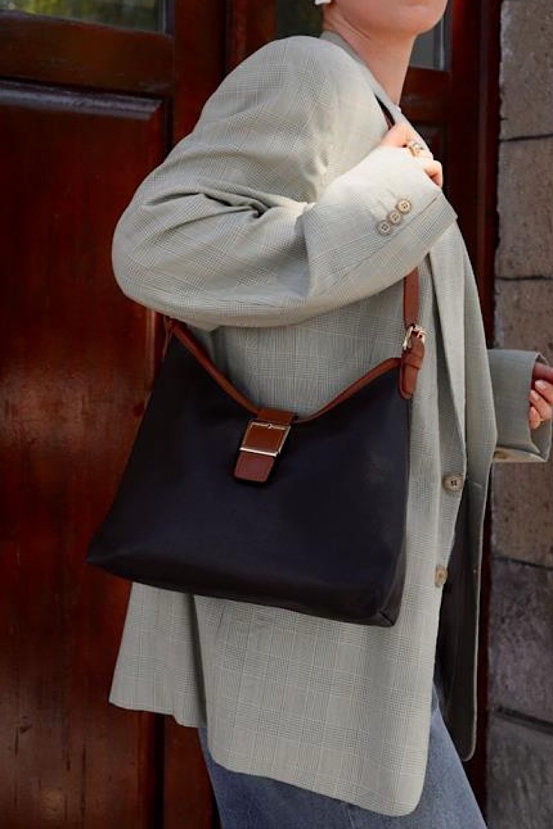 – Extérieur : Fermeture magnétique. Boucle de ceinture sur le devant.