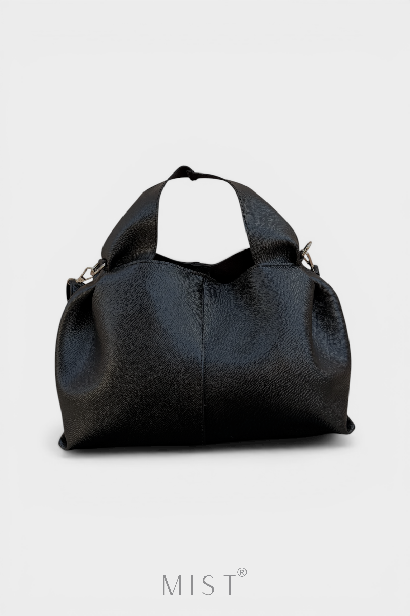 The bag can be comfortably carried by hand, on the shoulder, or crossbody.