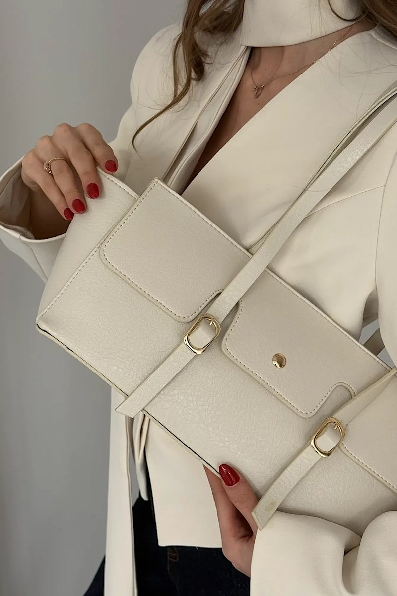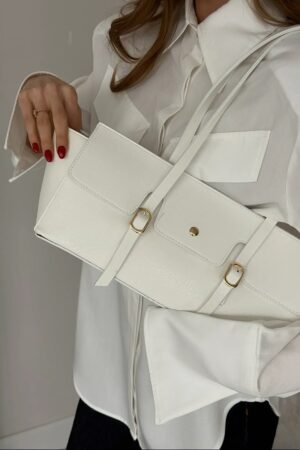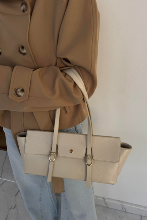 Fabriqué en cuir végan de première qualité, doux au toucher. Accessoires métalliques dorés.