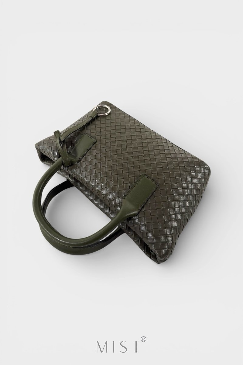 The bag can be comfortably carried by hand, on the shoulder, or crossbody.
