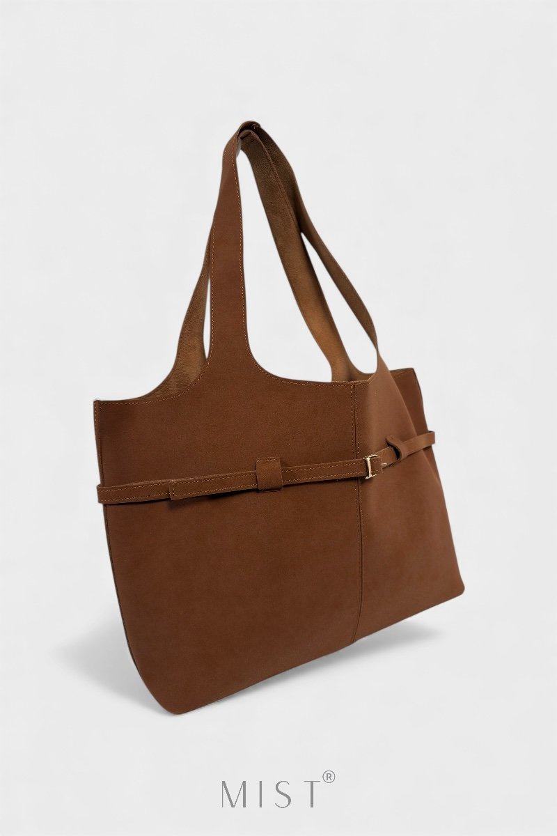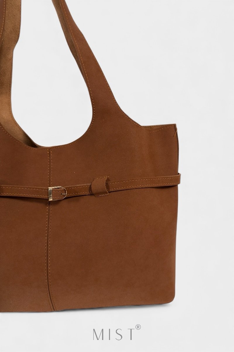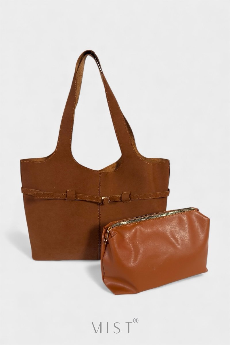 Features a removable inner zipped deep brown pouch