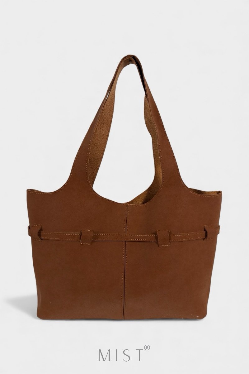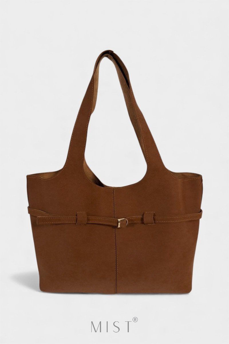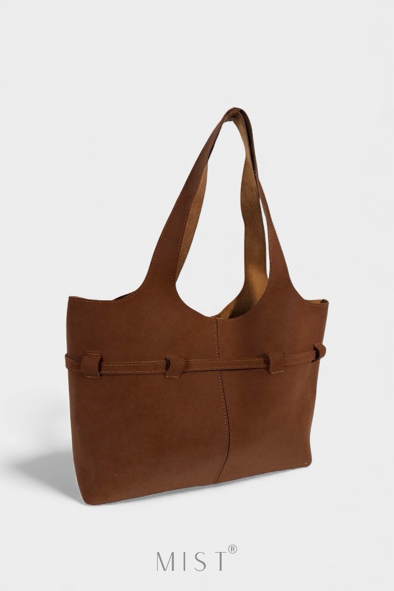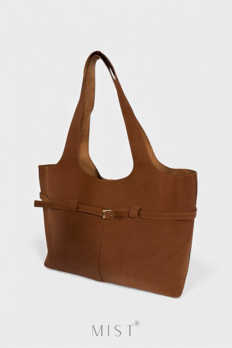 Features a removable inner zipped deep brown pouch