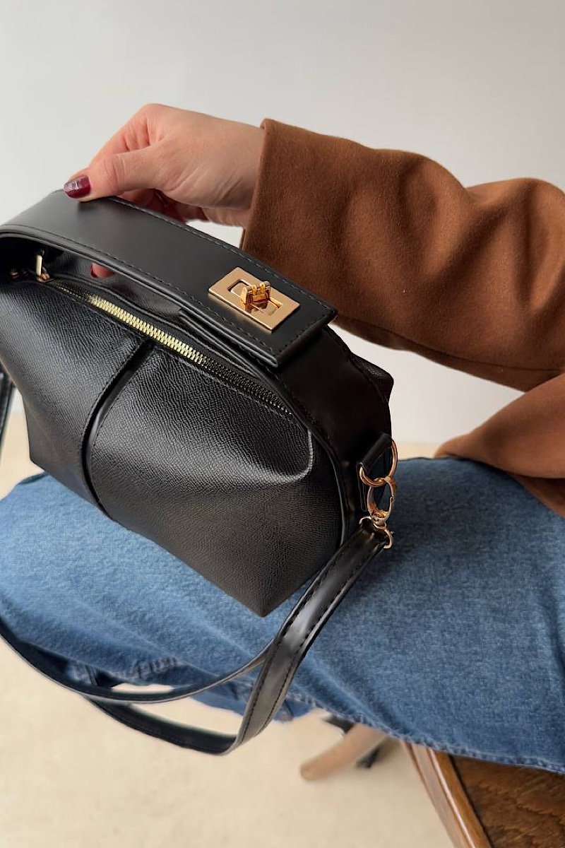 The bag can be comfortably carried by hand, on the shoulder, or crossbody.