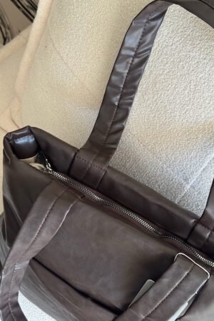 L’intérieur est doublé (la couleur de la doublure peut varier) et comporte deux compartiments.
