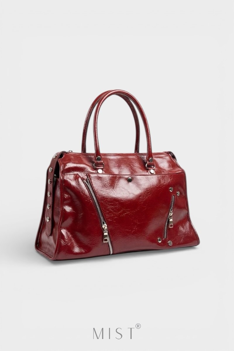 Product Dimensions: Width 40 cm. Height 30 cm (excluding handle), 45 cm (including handle). Depth 15 cm. A modern and robust design that adapts to any moment of the day… With its glossy textured surface, metal accessories, and sharp lines, it’s poised to become an indispensable part of urban style. Thanks to its spacious interior, you can easily carry your daily essentials, wallet, makeup bag, and even a small tablet; an adjustable carrying strap is also included. Key Features: Premium Vegan Leather Exterior with Glossy Texture: A modern and bold look. Double Zipper Front Compartments: Practical for easy access. Metal Details: Add a strong presence and stylish contrast to the bag. Sturdy Carrying Handles: Comfortable to use all day long. Large Interior Volume: Ideal carrying capacity for your daily needs. For those who like a minimalist but strong look. A 1-2 tone difference in color due to screen and lighting is normal.